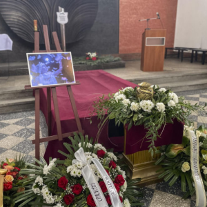 Niedługo potem Dawidziuk zwróciła się do żałobników z prośbą o wykonanie symbolicznego gestu. Każdy uczestnik otrzymał białe piórko, by posłać je w kierunku nieba. W kaplicy zapadła chwila ciszy, po czym dziesiątki zgromadzonych w tym samym momencie dmuchnęły w delikatne, białe piórka.